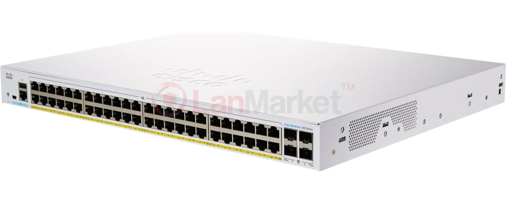 Cisco CBS250-48P-4G-EU оснащён 48 портами 10/100/1000 Мбит/с с поддержкой PoE+ и суммарным бюджетом мощности 370 Вт, что позволяет питать большое количество сетевых устройств. Для подключения к магистральным каналам предусмотрены 4 SFP-порта с пропускной способностью 1 Гбит/с.