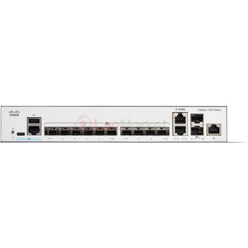 Модель Cisco C1300-12XS оснащена 10 портами 10G SFP+ для оптических подключений, 2 комбинированными портами 10G copper/SFP+ и 1 портом Gigabit Ethernet для управления (OOB management). Такая конфигурация обеспечивает гибкость при построении сети, позволяя сочетать медные и оптические каналы связи.