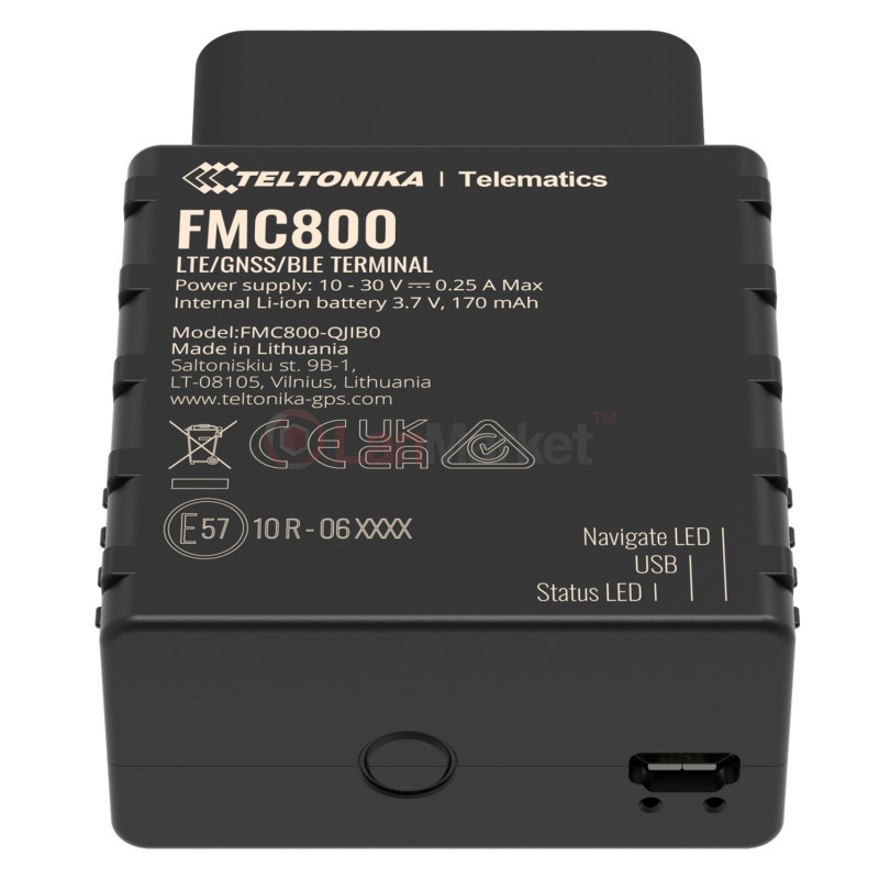 GPS-трекер Teltonika FMC800 — это компактное Plug & Play решение для базового и расширенного мониторинга транспорта, которое сочетает современные сети LTE Cat M1 и NB-IoT, Bluetooth и простоту установки через OBDII-разъем. Устройство разработано для быстрого внедрения без монтажных работ и подходит как для корпоративных автопарков, так и для частных пользователей. FMC800 обеспечивает стабильное отслеживание, контроль поездок и ключевые телематические функции при минимальных затратах на обслуживание.