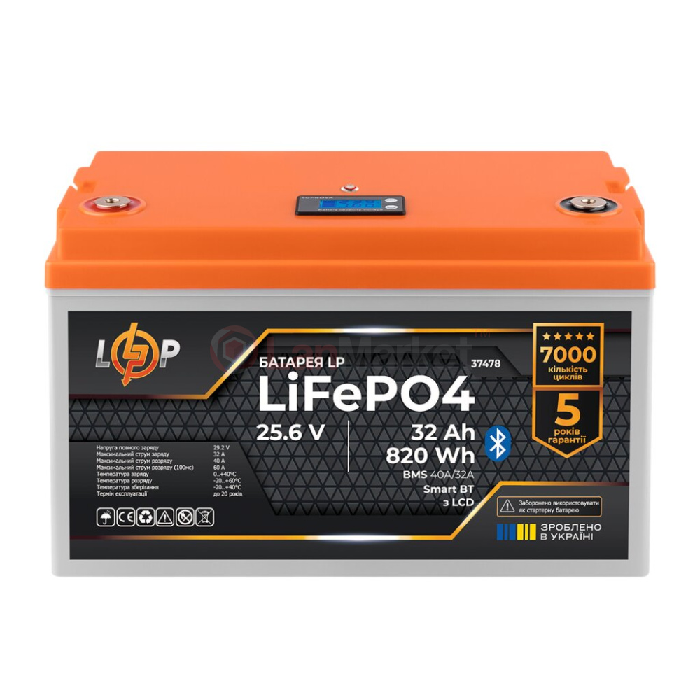 Аккумулятор LP LiFePO4 25,6V – 32 Ah (820Wh) с встроенной Smart BMS 40A/32A и модулем Bluetooth — это надёжное решение для резервного питания бытовой техники, офисного оборудования, систем бесперебойного питания и солнечных электростанций. Литий-железо-фосфатная технология обеспечивает повышенную безопасность, долговечность и стабильность работы даже при интенсивной эксплуатации.