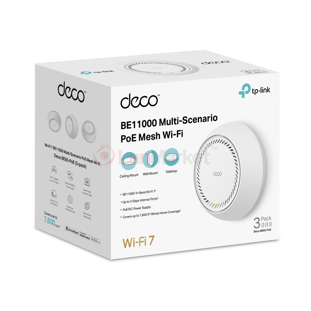 Deco BE65-PoE — трёхдиапазонная Mesh-система класса BE11000 с поддержкой Wi-Fi 7 и питанием через Ethernet, ориентированная на построение высокоскоростных сетей с гибким развертыванием и централизованной инфраструктурой.