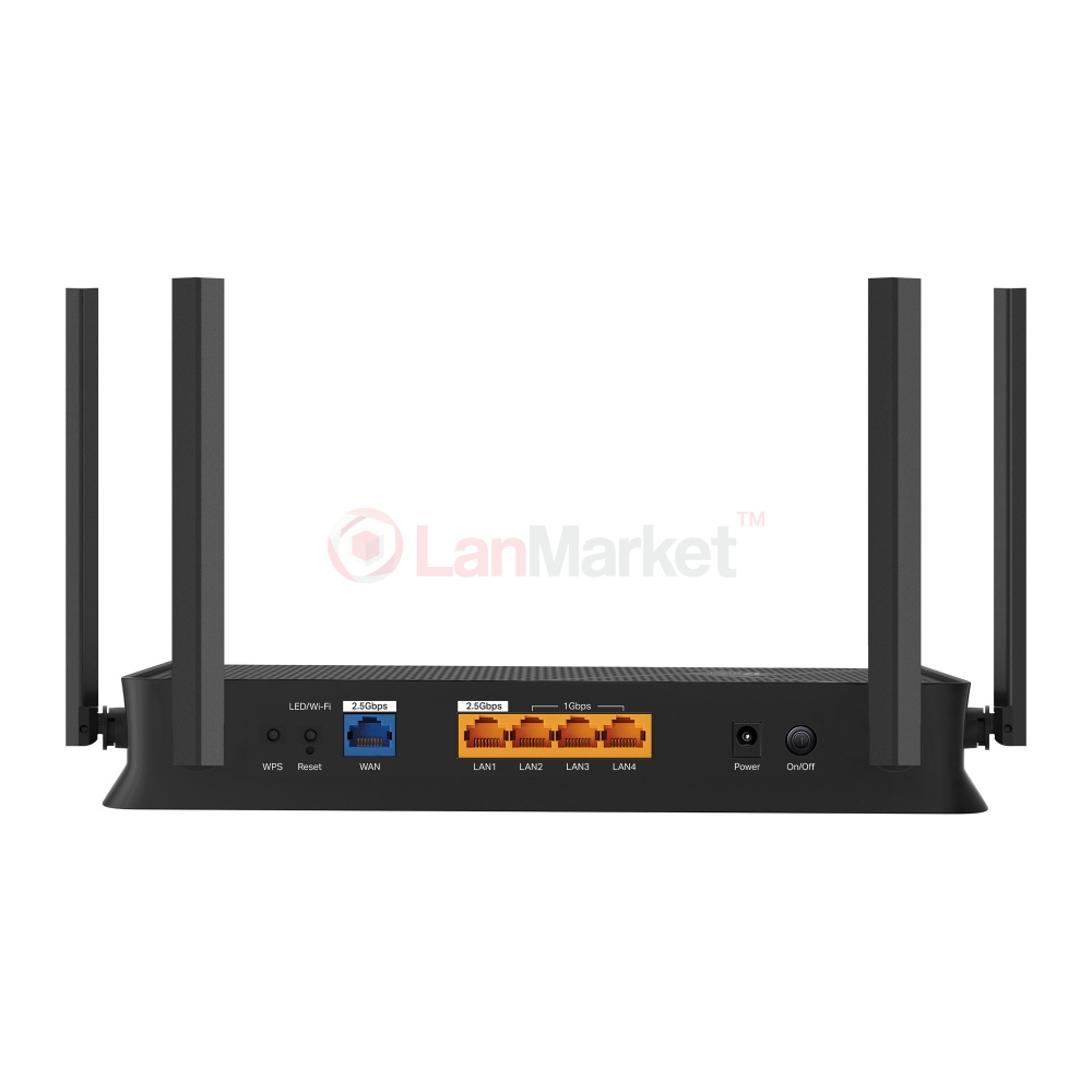 Устройство оснащено портами нового поколения, среди которых WAN и LAN с пропускной способностью 2.5 Гбит/с, что открывает возможности для сверхбыстрого проводного подключения. Дополнительные гигабитные LAN-порты позволяют одновременно подключать несколько устройств без потери скорости, а порт USB 3.0 расширяет функциональность для работы с накопителями или сетевыми сервисами.