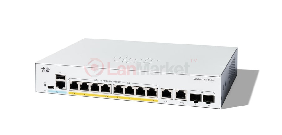 Cisco Catalyst C1200-8P-E-2G — це компактний гігабітний комутатор із підтримкою PoE, розроблений для малих офісів, філій та бізнес-структур, які потребують стабільної роботи мережевої інфраструктури та підключення IP-телефонів, камер відеоспостереження або точок доступу без зовнішнього живлення. Завдяки потужності PoE у 67 Вт, цей комутатор забезпечує живлення та передачу даних через один кабель, що спрощує монтаж і знижує витрати на обладнання.