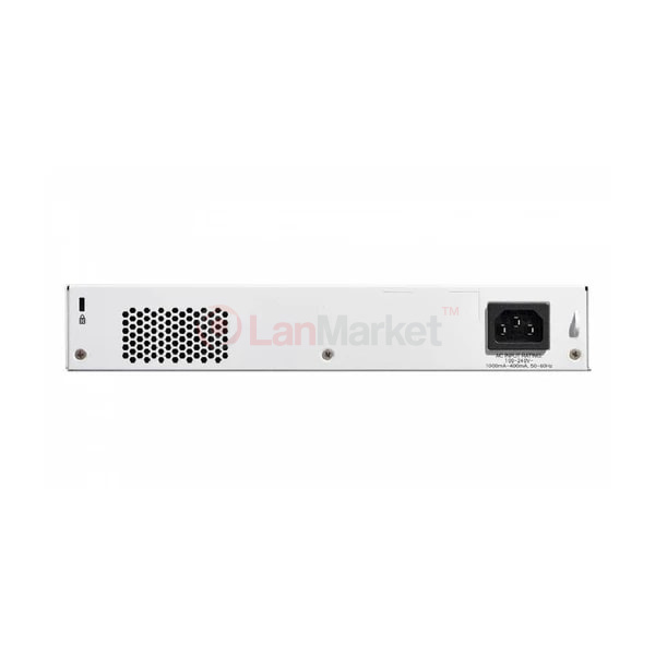 Пристрій оснащений вісьмома портами RJ-45 10/100/1000 Мбіт/с і двома комбінованими портами Gigabit RJ-45/SFP для підключення оптичних або мідних ліній. Комутатор має 512 МБ флеш-пам’яті, 1 ГБ оперативної пам’яті DDR4, буфер пакетів 1.5 МБ і двоядерний процесор ARM із тактовою частотою 1.4 ГГц. Його комутаційна здатність сягає 20 Гбіт/с, а швидкість обробки — до 14.88 мільйонів пакетів за секунду.