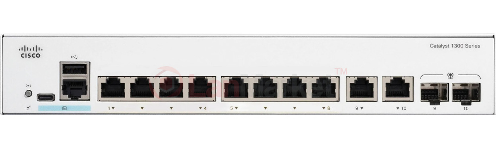 Модель C1300-8T-E-2G оснащена вісьмома портами Gigabit Ethernet і двома комбінованими портами RJ-45/SFP, що дозволяє підключати як мідні, так і оптичні лінії передачі даних. Комутаційна здатність пристрою становить 20 Гбіт/с, що гарантує безперебійний обмін даними навіть при високих навантаженнях. Для керування та налаштування передбачено стандартну консоль Cisco RJ-45, порт USB Type-C, а також додатковий порт USB для обслуговування чи оновлення мікропрограмного забезпечення.