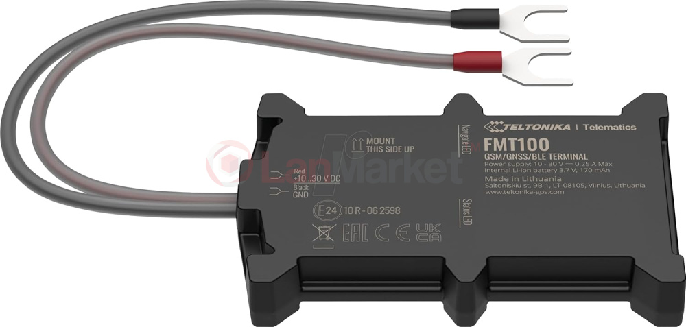 FMT100 підключається безпосередньо до акумулятора автомобіля за допомогою затискного з’єднання, що дозволяє встановити трекер за лічені хвилини. Вбудовані GNSS-антени забезпечують стабільне визначення місцезнаходження навіть у щільній міській забудові або в умовах слабкого сигналу. Внутрішня резервна батарея підтримує роботу пристрою у разі тимчасового відключення живлення, зберігаючи безперервність моніторингу.