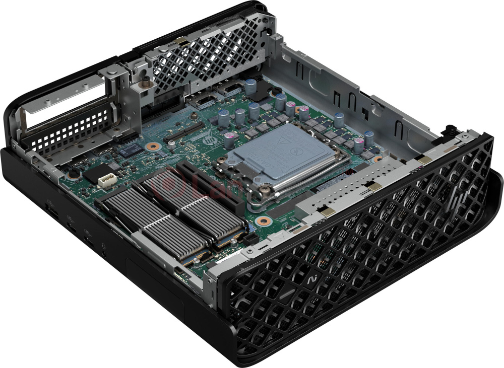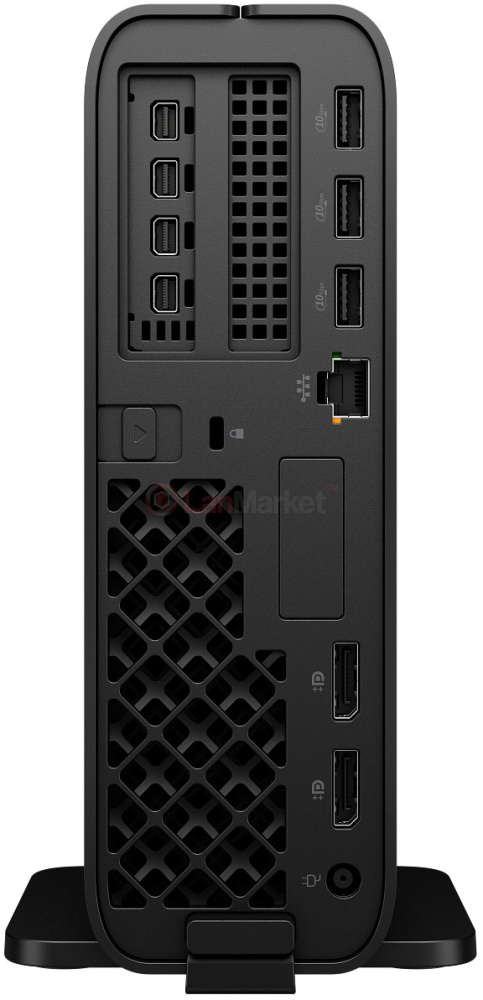 Робоча станція оснащена сучасними інтерфейсами підключення, включаючи DisplayPort, USB Type-C, USB-A та мережеве з’єднання Gigabit Ethernet, а також підтримує бездротові технології Wi-Fi та Bluetooth. Аудіосистема HD Audio з вбудованими динаміками забезпечує коректну роботу мультимедійних і комунікаційних застосунків. Живлення реалізовано через енергоефективний зовнішній блок.