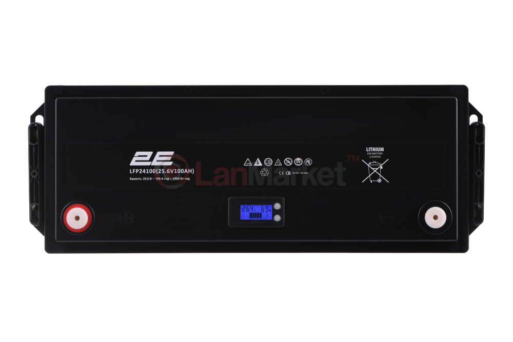 Акумуляторна батарея 2E LFP24, 24В, 100 А•год, LCD 8S — це високоякісне джерело енергії для телекомунікаційних систем, традиційних та альтернативних систем електроживлення. Завдяки технології LiFePO4 батарея забезпечує тривалий термін служби, стабільну роботу та підвищену безпеку. Інтегрований LCD-дисплей дозволяє зручно контролювати стан батареї та ключові параметри роботи, а корпусний тип монтажу дає можливість встановлення на стійку або безпосередньо на підлогу, що забезпечує гнучкість у плануванні інфраструктури.