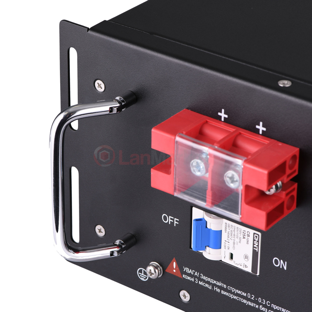 Батарея побудована на LiFePO4-комірках за схемою 16S та забезпечує номінальну напругу 51,2 В з ємністю 100 А·год. Робочий діапазон напруги становить 47,5–55,2 В, а номінальний струм заряду — 20 А. При цьому допускається максимально 120 А заряду та до 125 А постійної розрядки, з імпульсним струмом до 150 А.