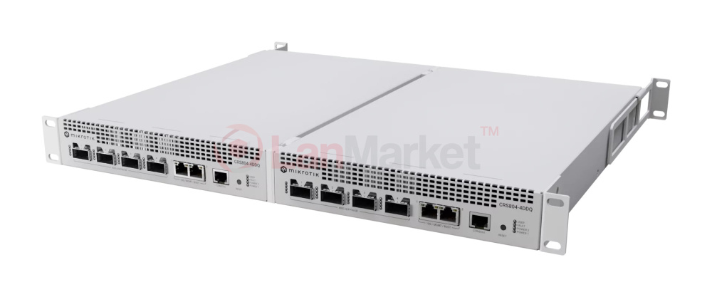 CRS804 DDQ оснащений чотирма портами 400G QSFP-DD, кожен з яких побудований на основі восьми незалежних ліній передачі даних. Це дозволяє гнучко використовувати breakout-конфігурації з поділом на 2×200G або нижчі швидкості (100G/40G), забезпечуючи сумісність із різними поколіннями мережевого обладнання.