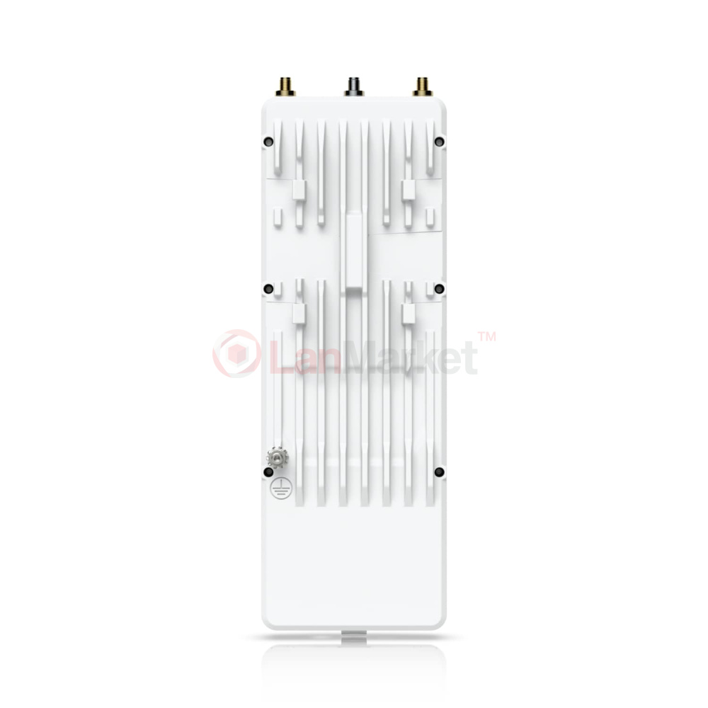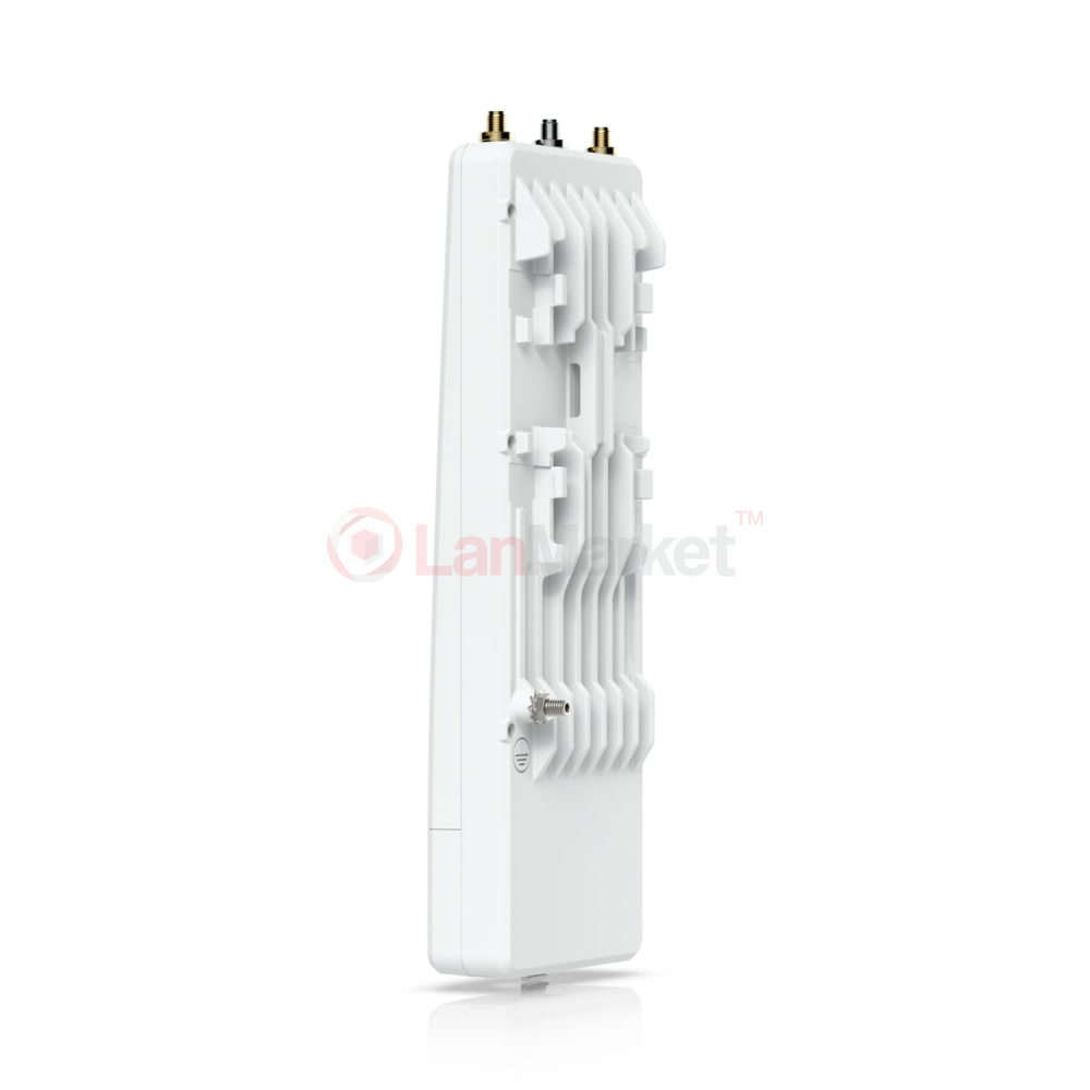 Корпус із алюмінієвого сплаву та УФ-стійкого полікарбонату захищає електроніку від вологи та пилу за стандартом IPX6, а зручний універсальний кронштейн та металевий ремінь полегшують монтаж на опорах діаметром 25–50 мм. Всередині розташований чотириядерний процесор IPQ5322 із частотою 1,5 ГГц та 1 ГБ оперативної пам’яті DDR4. Пристрій має два високошвидкісних інтерфейси – 10 GbE RJ45 і 10G SFP+ – та водонепроникні RP-SMA роз’єми для зовнішніх антен і GPS. Споживана потужність не перевищує 20 Вт, живлення здійснюється через пасивний PoE (входить адаптер 54 В).