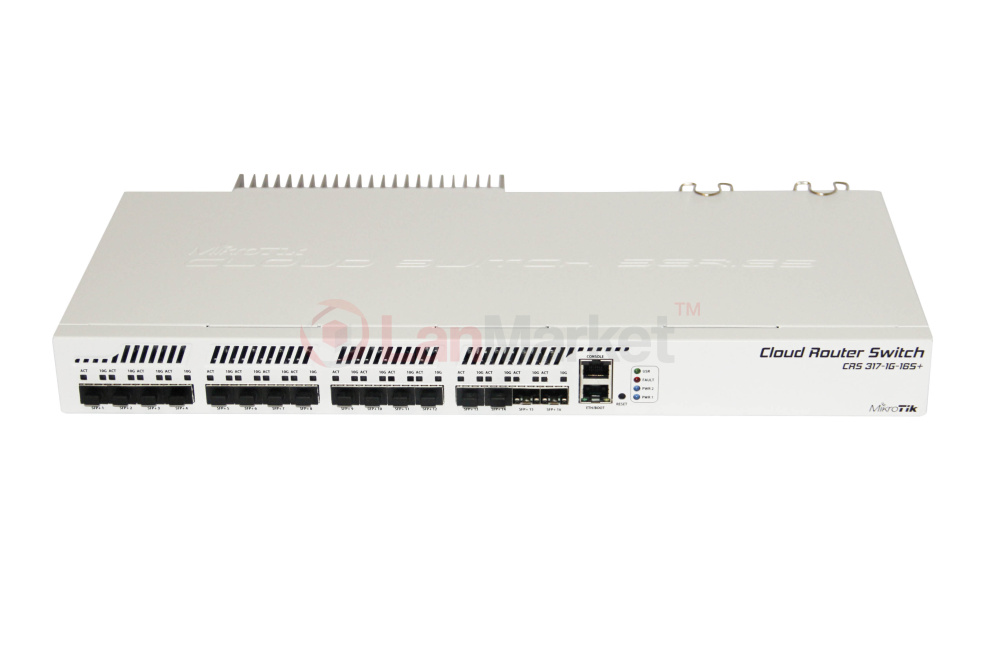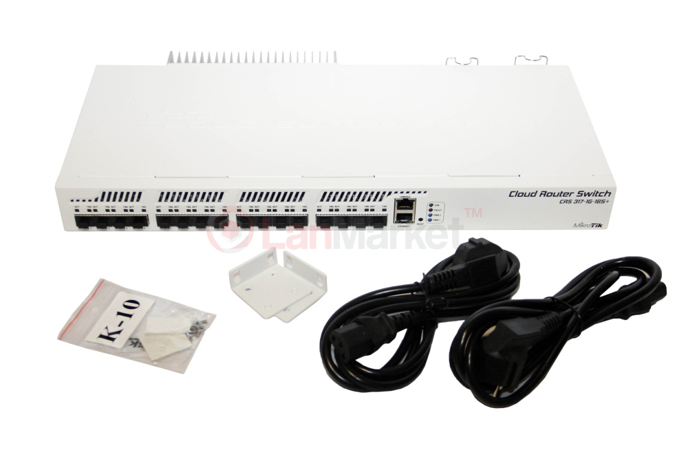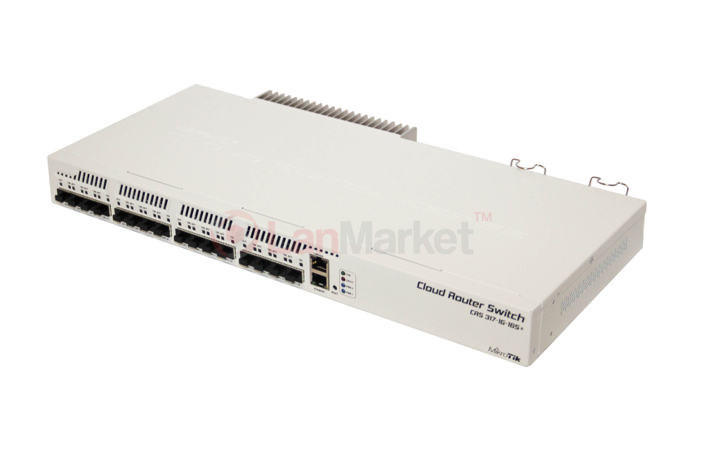 CRS317 оснащен 16-ю слотами SFP+ с поддержкой как обычных модулей SFP 1.25 Gb, так и высокоскоростных SFP+ 10 Gb. Сами модули в комплект поставки не входят, вы можете приобрести необходимое количество и тип модулей по своим требованиям.