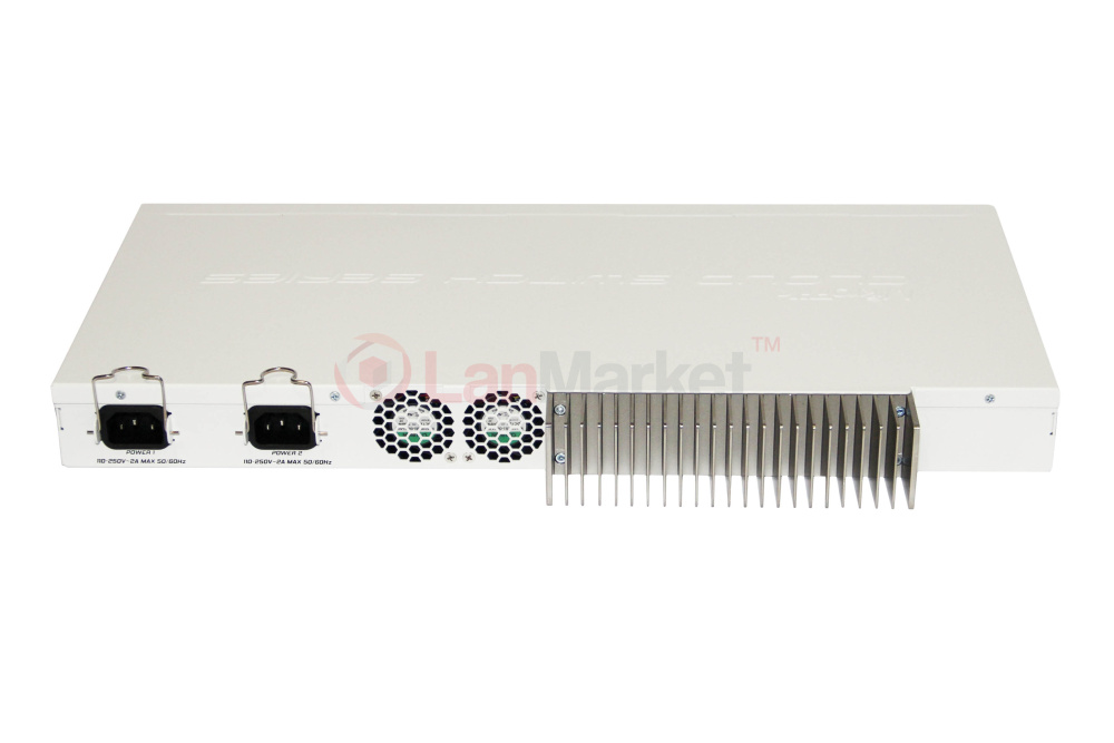 В заводской комплектации CRS317 оснащен двумя встроенными адаптерами питания, что позволяет сохранить работоспособность системы в случае отказа одной из линий (источника) или самого адаптера питания.