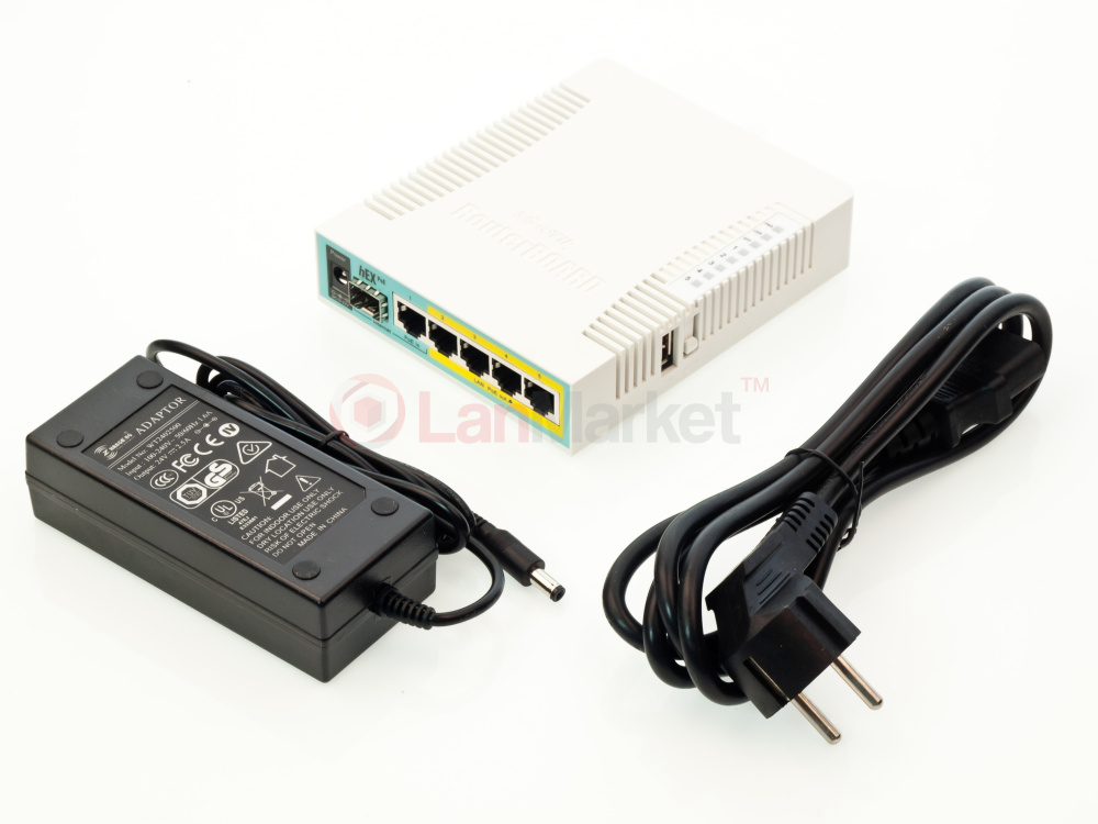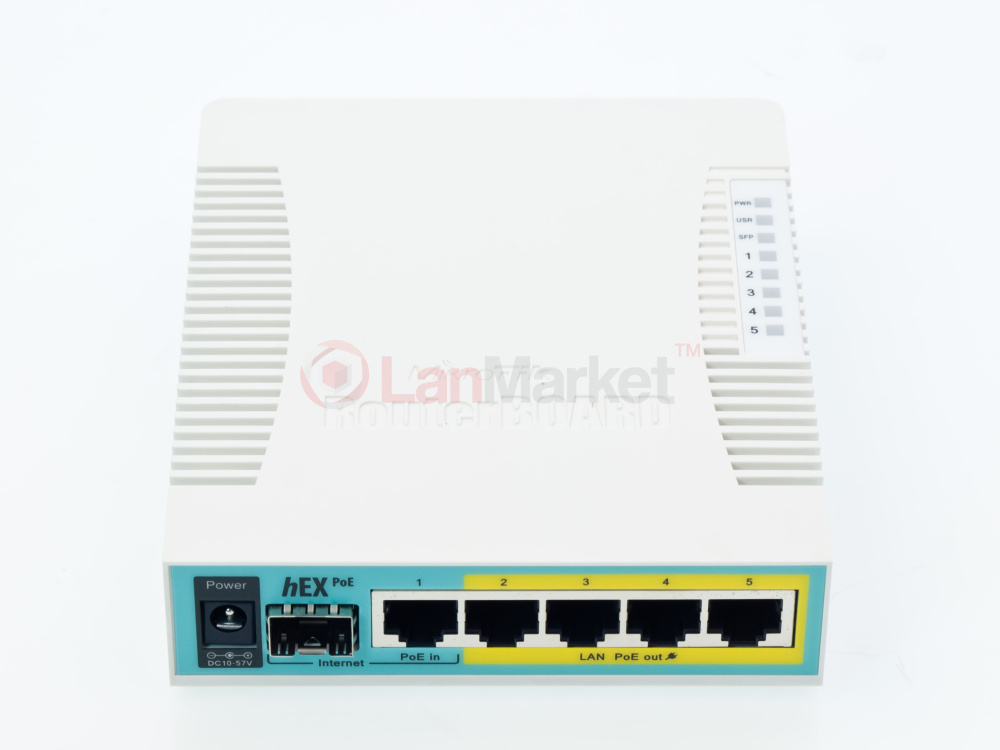 Mikrotik hEX PoE RB960PGS поддерживает дистанционное питание до 4 устройств по технологии PoE, которые должны быть подключены к портам Ethernet 2...Ethernet 5 по стандарту IEEE 802.3af/at с максимальным напряжением 56 В.