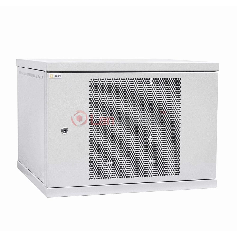 Шкаф имеет стойки для удобной установки оборудования и фиксации его по глубине. Панели съемные, что обеспечивает легкий доступ к оборудованию с 3 сторон. Шкаф предназначен для установки на стену и для крепления на задних ребрах есть 4 отверстия. Для хорошей циркуляции воздуха и охлаждения оборудования есть перфорированные отверстия. Передняя дверь также перфорированная.