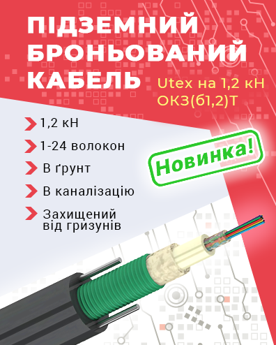 Компанія Utex пропонує унікальний броньований кабель ОКЗ(б1,2)Т-xx, що розрахований на навантаження 1.2 кН.