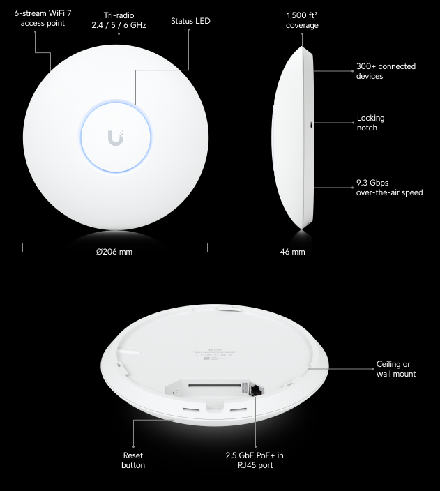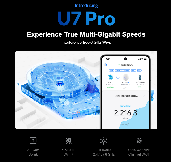 Після багатьох років розробки Ubiquiti з гордістю представляє UniFi 7 — широкомасштабовану платформу WiFi 7, здатну забезпечувати користувальницький досвід, подібний до дротового. 8 січня 2024 року Ubiquiti анонсувала точку доступу U7 Pro PoE як частину свого нового сімейства UniFi 7. Детальныше про цю точку і Wi-Fi 7 в нашому експрес-обзорі Попередній огляд U7-Pro: Ласкаво просимо до Wi-Fi 7!