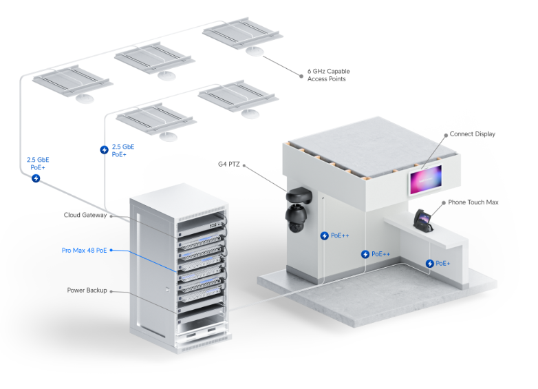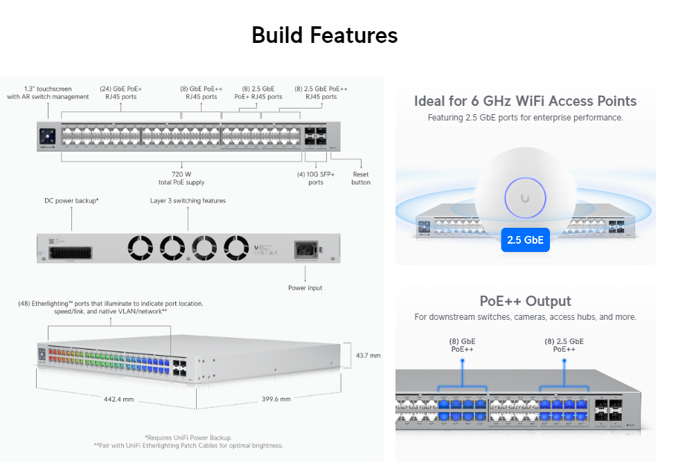 Високопродуктивна комутація з 2,5 GbE, виходом PoE++ і Etherlighting деально підходить для точок доступу WiFi з частотою 6 ГГц.