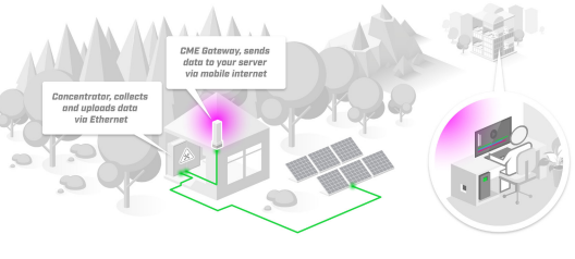 CME Gateway CME22-2n-BG77 – бюджетний модем у міцному, невибагливому корпусі з можливістю підключення Ethernet-пристроїв до мобільної мережі. Устаткування можна використовувати для побудови системи Розумний дім, підключати до модему розумні розетки, датчики лічильників обліку електроенергії, витрати води.