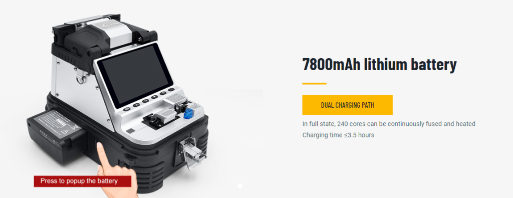 Зварювальний апарат оснащений літієвою батареєю ємністю 7800 mAh, заряду якої вистачає на 240 зварок. Вона знімна і може заряджатися окремо.