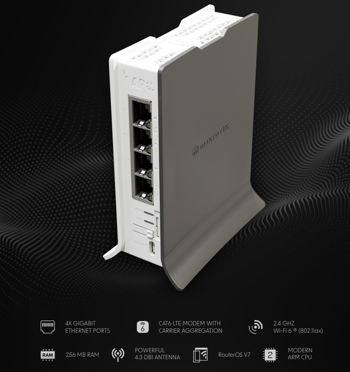 Компанія MikroTik випустила новий hAP ax lite LTE6! Пристрій зберіг всі параметри раніше представленого hAP ax lite, але з додаванням вбудованого LTE-модему Cat.6. Таким чином hAP ax lite LTE6 забезпечує вам різні варіанти підключення до мережі, включаючи мобільний Інтернет.
