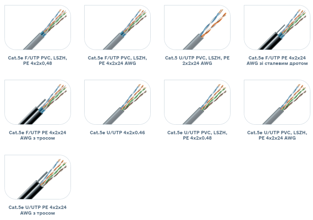 Весь кабель Cat. 5e у нашому каталозі - кабель Cat. 5e ЗЗКМ.