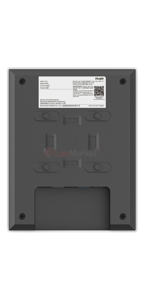 Ruijie AP820-L оснащена одним портом 10/100/1000M Ethernet для подключения к сети с поддержкой PoE In, благодаря чему точка доступа может питаться от PoE коммутатора или другого устройства, без дополнительного адаптера питания. Порт LAN скрытый, к тому же конструкция корпуса позволяет скрыть и кабель который идет к точке доступа, что обеспечивает профессиональный и упрощенный стиль развертывания, который менее заметен.