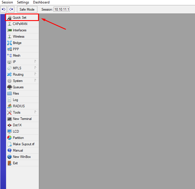 Після підключення виберіть Quickset у верхньому лівому куті:
