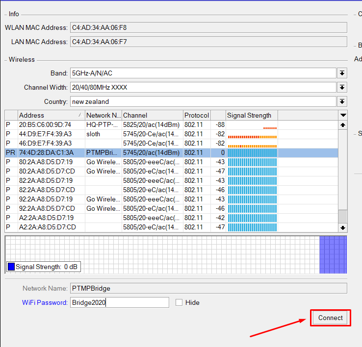 Підключіться до точки (Натисніть «Connect» у верхньому правому куті).