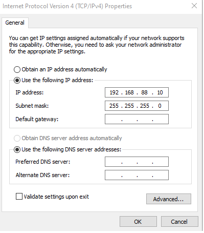 Якщо ви налаштовуєте пристрій з автономного ПК, вам потрібно буде встановити статичну IP-адресу в правильному діапазоні.