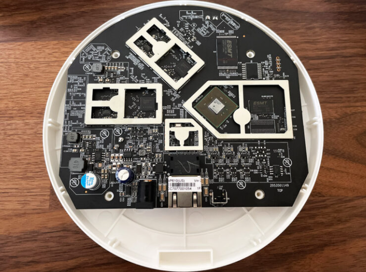 Розібравши пристрій, можна виявити чотириядерний процесор Qualcomm IPQ6000 з тактовою частотою 1,2 ГГц, 256 МБ оперативної пам’яті від ESMT (M15T4G16256A), 128 МБ флеш-пам’яті від ESMT (F59D1G81MB) і високоінтегрований трансивер Ethernet Realtek RTL8211F (10/100/ 1000BASE-T).