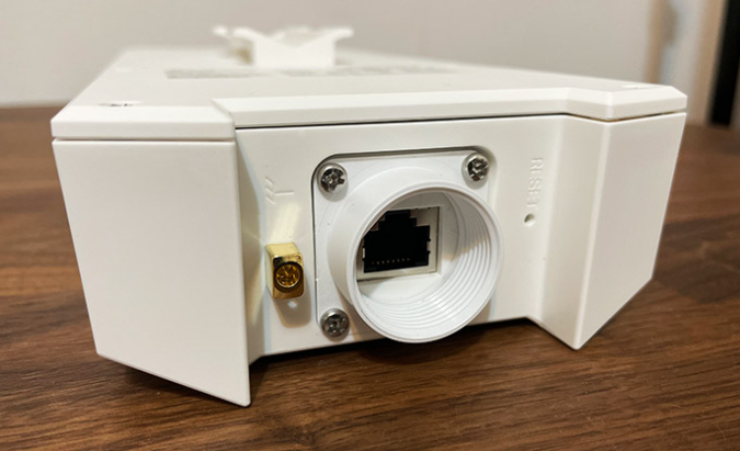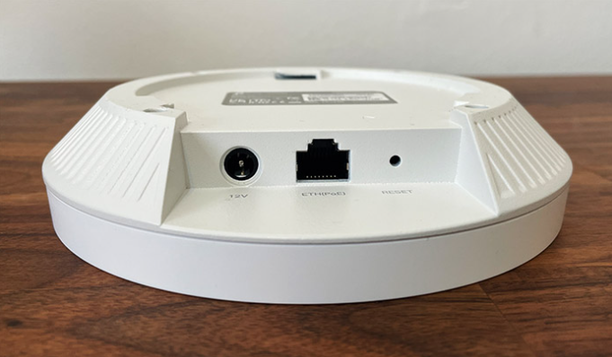 Переходячи до секції портів, металева секція має спеціальні отвори для порту живлення 12 В, порту Gigabit Ethernet (підтримує 802.3at) і втоплену кнопку Reset (яка повертає точку доступу до заводських налаштувань).