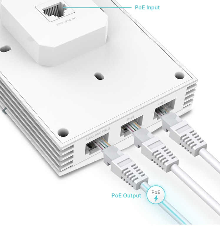 Для конференц-залів, гнучких робочих просторів або навіть готельних люксів EAP615-Wall від TP-Link пропонує чудове мережеве рішення для економії місця. Ця маленька настінна точка доступу доступна за ціною та пропонує дводіапазонний Wi-Fi 6 разом із 4 мережевими портами Gigabit Ethernet, один із яких підтримує PoE out для живлення таких пристроїв, як IP-телефони чи відеокамери. Усі порти Ethernet є гігабітними, а задній – порт PoE In, який живить TP-Link EAP615-Wall. Майте на увазі, що вхідний порт PoE потребує пристрою PoE+ (комутатора або адаптера), щоб забезпечити додаткове живлення пристрою PoE 802.3af, оскільки вихідна потужність може досягати лише 13 Вт.