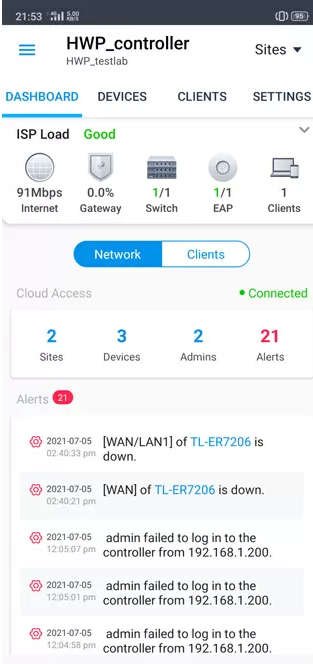 Що ж, залишилося завантажити програму Omada на смартфон, вибрати підключення до Cloud Center, ввести логін і пароль - і можна сміливо вирушати на курорт відпочивати: весь функціонал Omada буде у вас на долоні.