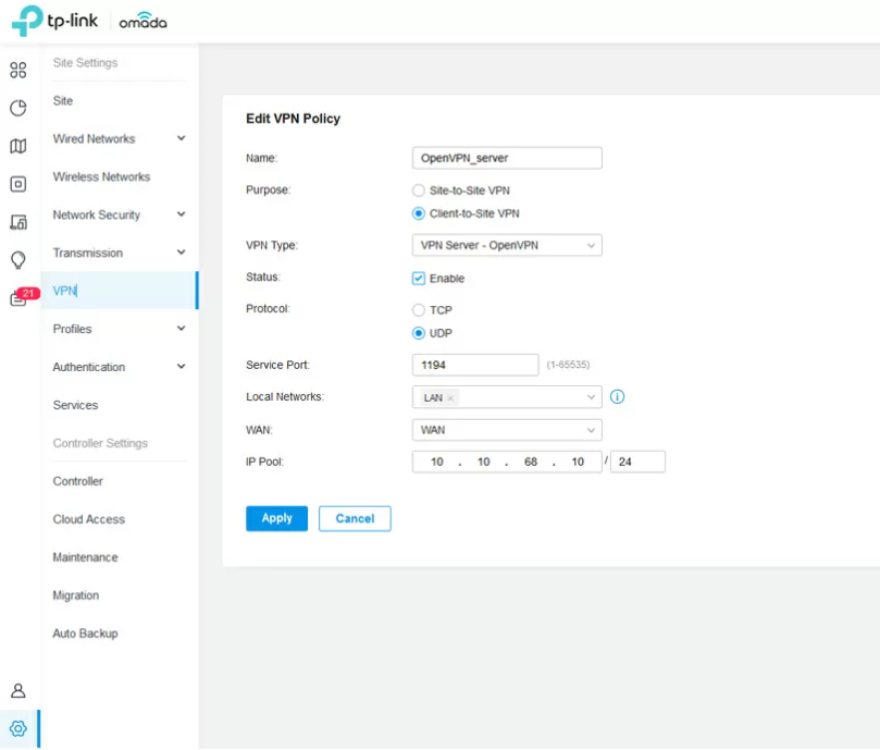 Якщо у вас в арсеналі є кілька об'єктів з встановленим обладнанням TP-Link, і всі вони перераховані в Omada Cloud, то для встановлення VPN-тунелю між ними достатньо вибрати потрібний об'єкт у списку та натиснути одну кнопку. Ну а оскільки в реальному світі все дещо складніше, ви можете налаштувати VPN вручну, встановивши шлюз як клієнтом, так і сервером. Тут підтримуються протоколи L2TP, PPTP, IPsec і OpenVPN, що дозволяє підняти тунель на будь-якому порту та через транспорт UDP і TCP.