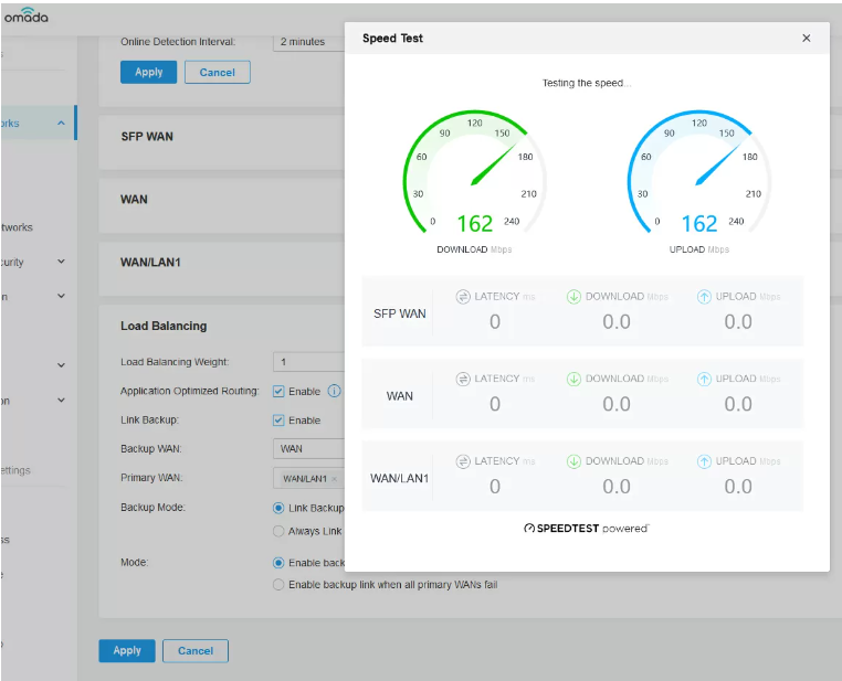 Періодично шлюз перевіряє швидкість Інтернету, завантажуючи з сайту Speedtest.net, тож якщо ваша компанія використовує кілька каналів зв’язку, ви можете налаштувати шлюз так, щоб він завжди вибирав найшвидший і найменш завантажений.