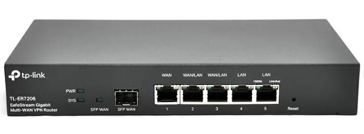 Наш тестовий шлюз TP-Link TL-ER7206 має аж 4 порти WAN: виділений SFP і RJ45 і комбінований WAN/LAN RJ45. Всі порти гігабітні, з можливістю заміни MAC-адреси. Під час балансування навантаження ви можете встановити власну вагу для кожного з портів, віддаючи пріоритет найшвидшому.