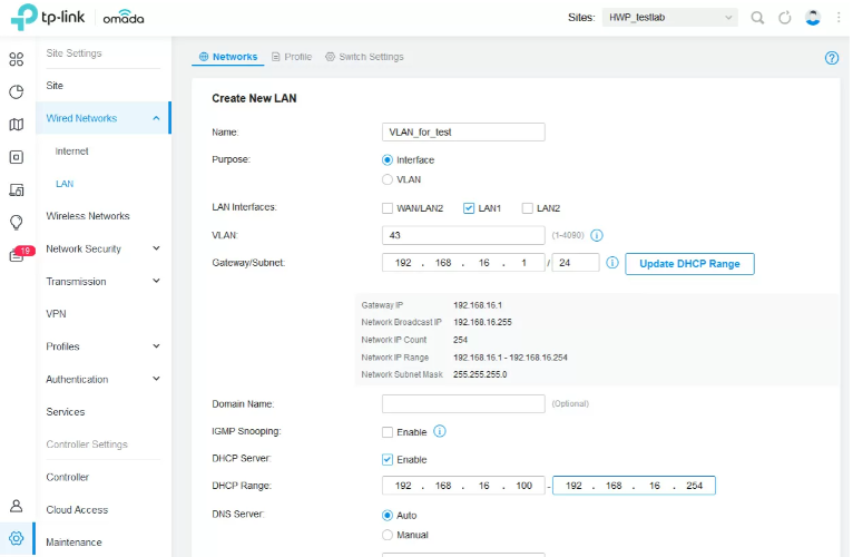 У нашому випадку почнемо з облаштування віртуальних мереж, VLAN в меню редагування об'єкта (сайту) в розділі Дротові мережі (Wired Networks). TP-Link Omada дозволяє налаштувати VLAN двома способами: перший – це просто віртуальна мережа, цей поділ використовуватиметься на комутаторах. Другий - це конфігурація сегментів підмережі на шлюзі доступу з власними діапазонами IP-адрес і DHCP-серверів, що дає можливість відразу ідентифікувати клієнта в потрібній віртуальній мережі і писати в заданий діапазон IP.