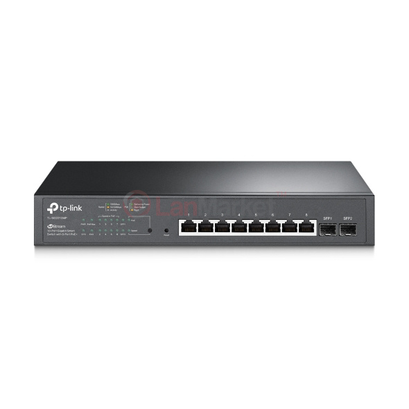 Умный коммутатор TP-Link TL-SG2210MP оснащен 8 портами 10/100/1000 Мбит/с RJ45, 2 портами Gigabit SFP. Все 8 портов коммутатора поддерживают PoE out, снабжая 30 Вт на порт. Общий бюджет коммутатора PoE составляет 150 W. Это идеальный вариант питания камер или точек доступа в небольших помещениях.