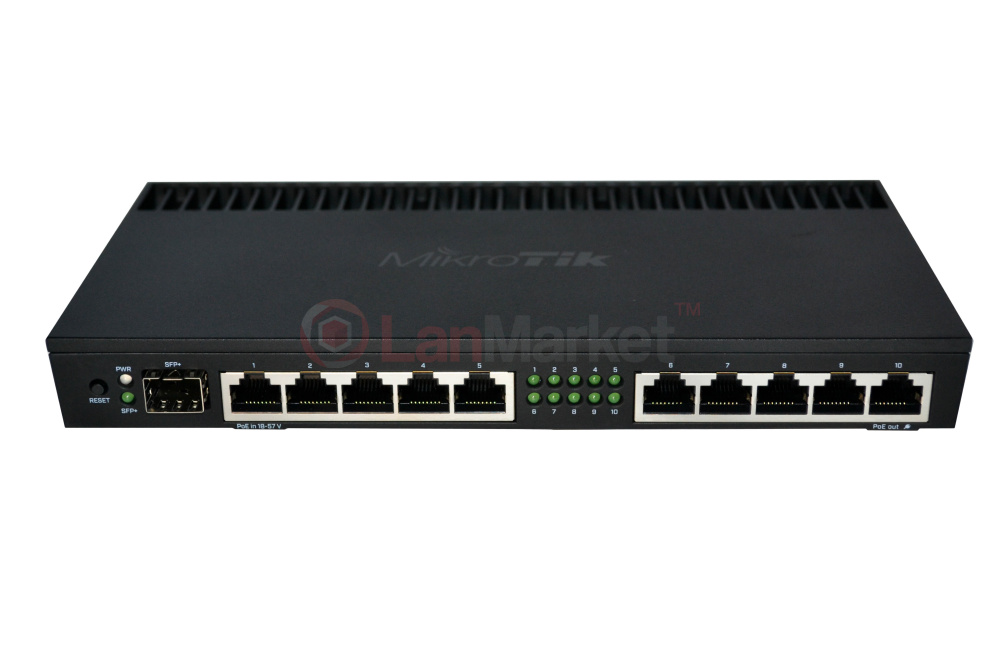 RB4011 можуть забезпечувати PoE out на порту №10 і оснащені компактним і професійним корпусом з твердого металу в матовому чорному кольорі. На 1 порту є підтримка PoE In як Passive PoE з напругою 18-57 V.
