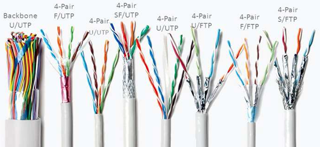 Існують різні типи кабелів Ethernet, такі як Cat5, Cat5e, Cat6 і Cat6e, кожен з яких підтримує різні швидкості передачі і пропускні здатності.