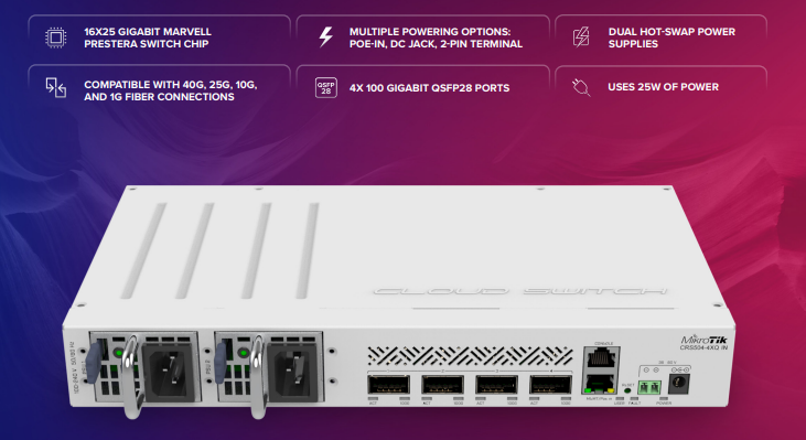 Компанія продовжує розширювати сімейство 100-гігабітних пристроїв - ви вже бачили неймовірний 100-гігабітний маршрутизатор CCR2216, який був представлений на початку року. Тепер настав час для відповідного комутатора - CRS504-4XQ-IN. Невеликий розмір у поєднанні з низьким енергоспоживанням (25 Вт без насадок!) Ідеально підходить для початку розширення 100-гігабітної мережі в повсякденних умовах. Ця швидкість більше не обмежується центрами обробки даних, інтернет-провайдерами та великими офісами. Ви також можете оновити свою 10- або 25-гігабітну мережу.