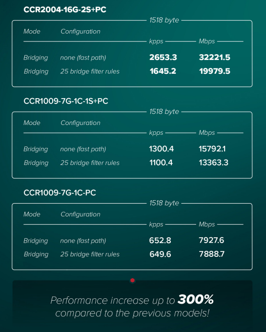 До 300% швидше, ніж попередні маршрутизатори CCR1009 – у блаженній тиші! Розкіш, яку ви заслуговуєте за ціною, яку ви можете собі дозволити.