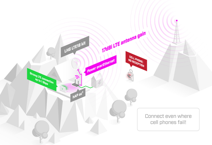 Як і попередні моделі LHG LTE, це інтернет-рішення останньої милі для ситуацій, коли навіть на вашому телефоні може бути відсутній сигнал. Новий LHG поставляється з ультрасучасним модемом LTE категорії 18 – для найшвидшого мобільного інтернету, де б ви не знаходилися. Цей комплект підтримує швидкість до одного Гбіт/с! Завдяки великій антені з високим коефіцієнтом посилення 17 дБі комплект LHG LTE18 може підключатися до веж стільникового зв'язку в екстремальних сільських районах, де нічого іншого немає.