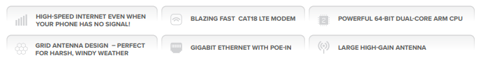 У комплект LHG LTE18 входить модем CAT18 LTE 1,2 Гбіт/с, який забезпечує агрегацію несучих та дозволяє пристрою використовувати кілька діапазонів одночасно. Це велика перевага, коли в цьому районі багато користувачів LTE. Він забезпечує кращу реакцію в багатолюдному середовищі та більш високу ефективність при слабкому сигналі у сільській місцевості. Якщо ви конкуруєте за трафік у місці з поганим зв'язком, новий LHG надасть вам перевагу. Ми спостерігаємо подвоєння швидкості інтернету в сільській місцевості після переходу на агрегацію операторів зв'язку, тому немає необхідності чекати на розширення кабельної мережі.