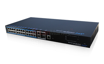 Завдяки чіпу компанії Marvell, світч успішно живить і керує 24 мережевими камерами, що підтримують формат електропостачання IEEE 802.3 af або IEEE802.3at по PoE. Вся потужність споживання складає 450W, при цьому на канал подається <30W. Гранична доставка електроживлення досягає 150 метрів. Реалізація включення пристроїв через конектор RJ45.