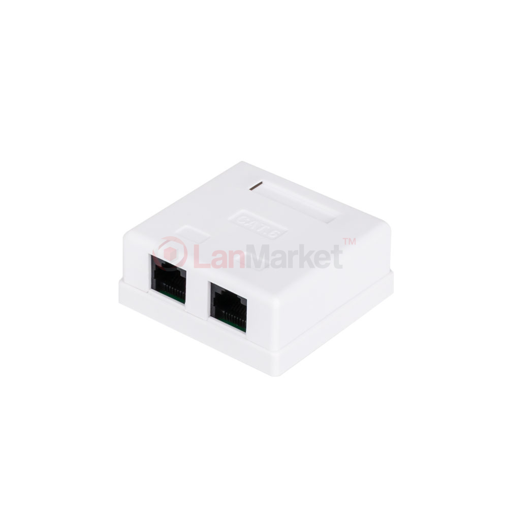 Ця модель є накладною білою розеткою з двома портами RJ-45, яка призначена для встановлення на стіні. Вона має 8 контактів і використовує стандартне розпинання. Навпроти кожної контактної групи є кольорове маркування, яке відповідає стандартам T568A та T568B (на розетці позначені літерами «А» та «В»). Щоб уникнути проблем, вся мережа LAN повинна будуватися на одному стандарті. Який стандарт використовувати, можна визначити по розпинці конектора на кабелі, що входить до приміщення.