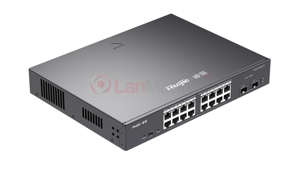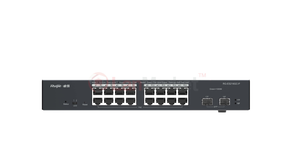 RG-ES218GC-P - 18-портовий гігабітний смарт-комутатор з 16 портами 10/100/1000 Base-T з підтримкою PoE та 2 SFP Base-X портами. Загальна комутаційна здатність комутатора становить 36Gbps, а швидкість пересилання пакетів 26.8Mpps. Комутатор оснащений таблицею MAC-адрес на 8K.