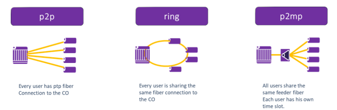 Оптичні мережі доступу (OAN) зазвичай розгортаються з допомогою однієї з трьох різних архітектур: точка-точка (P2P), кільце чи точка-многоточка (P2MP), як показано малюнку 1.