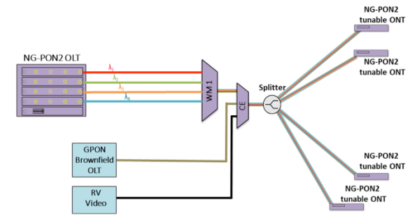 Малюнок 4 ілюструє основні будівельні блоки NG-PON2. Вони включають: